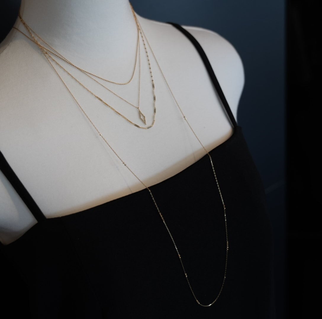 繊細なベネチアンチェーンが大人っぽいフリーネックレス。