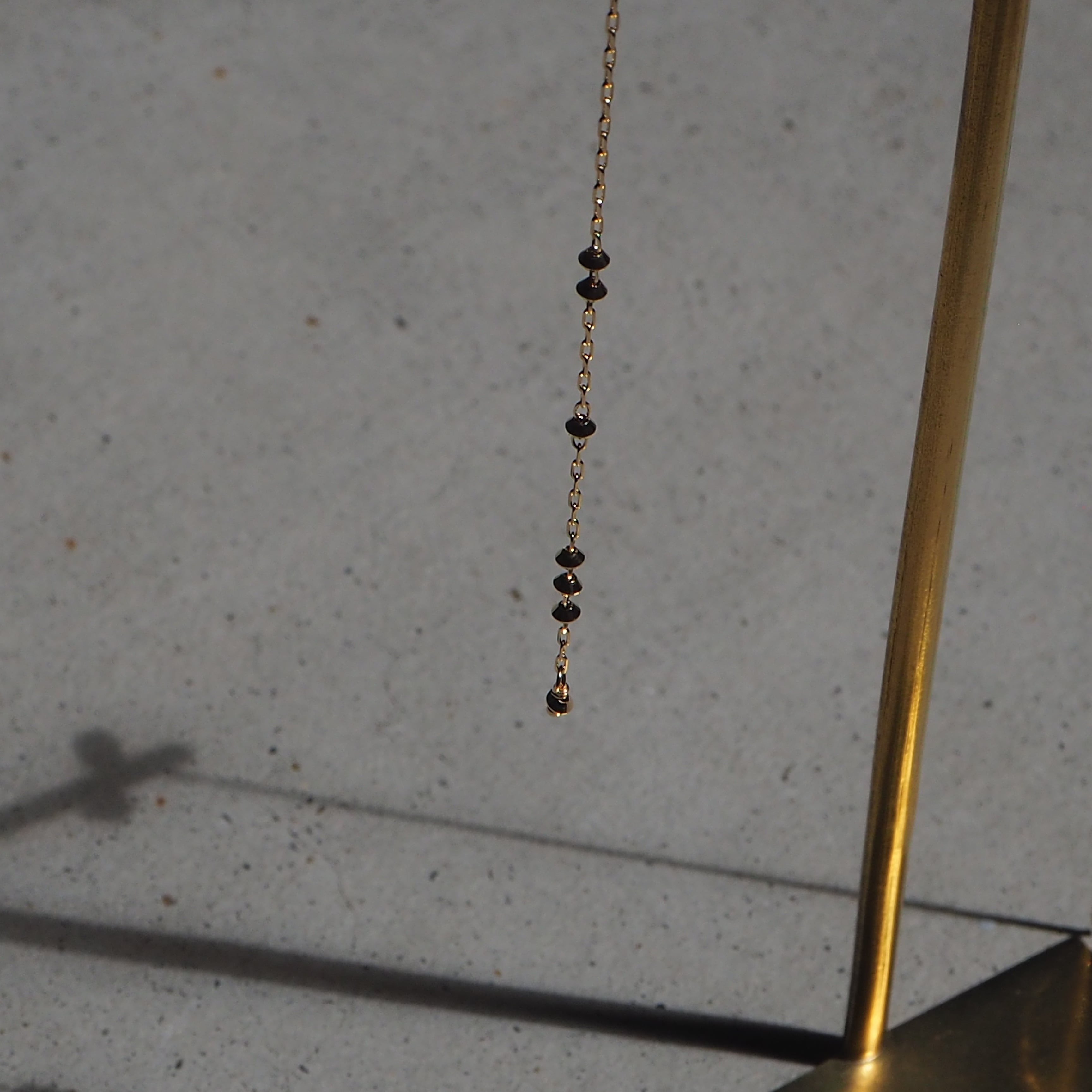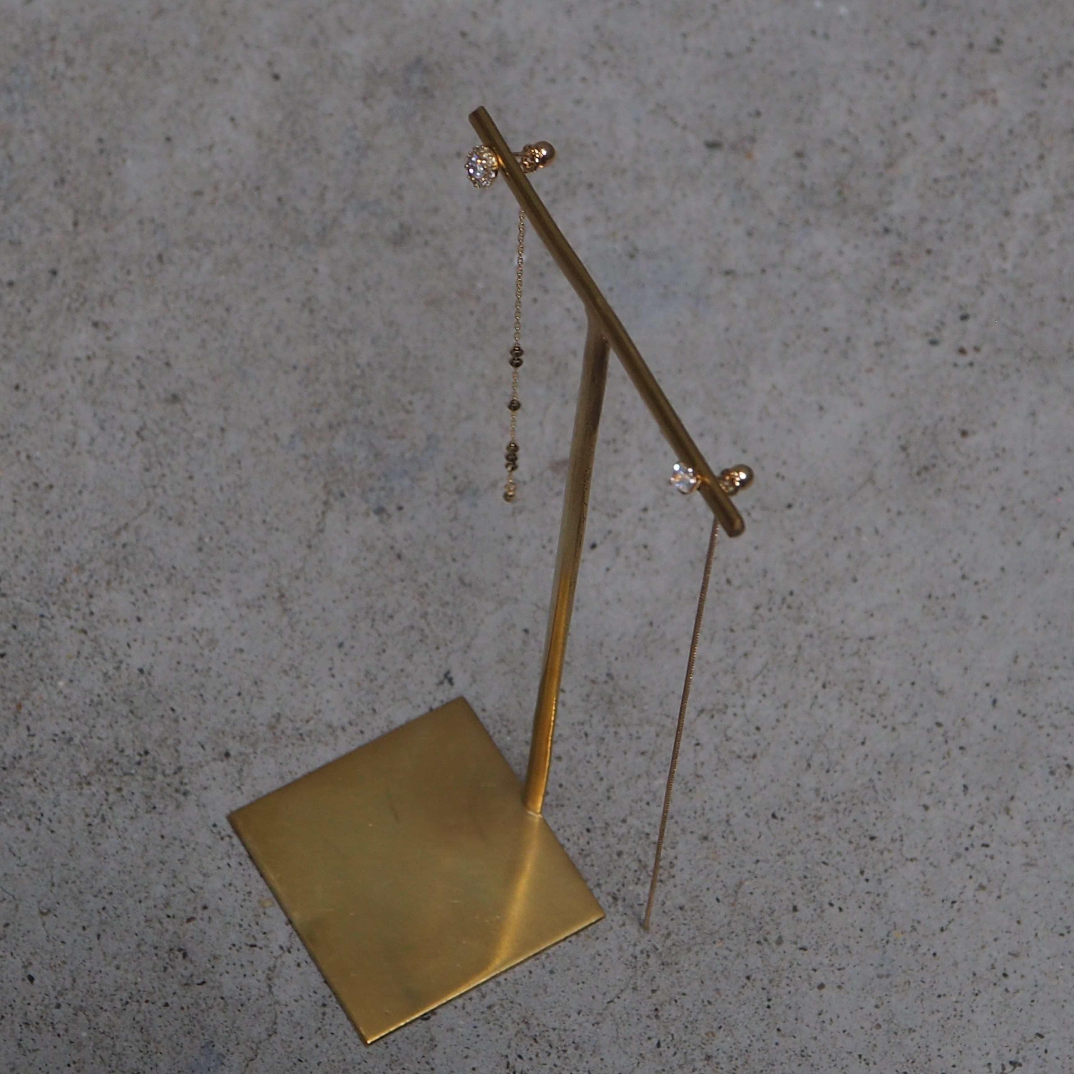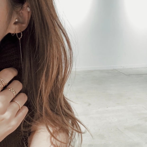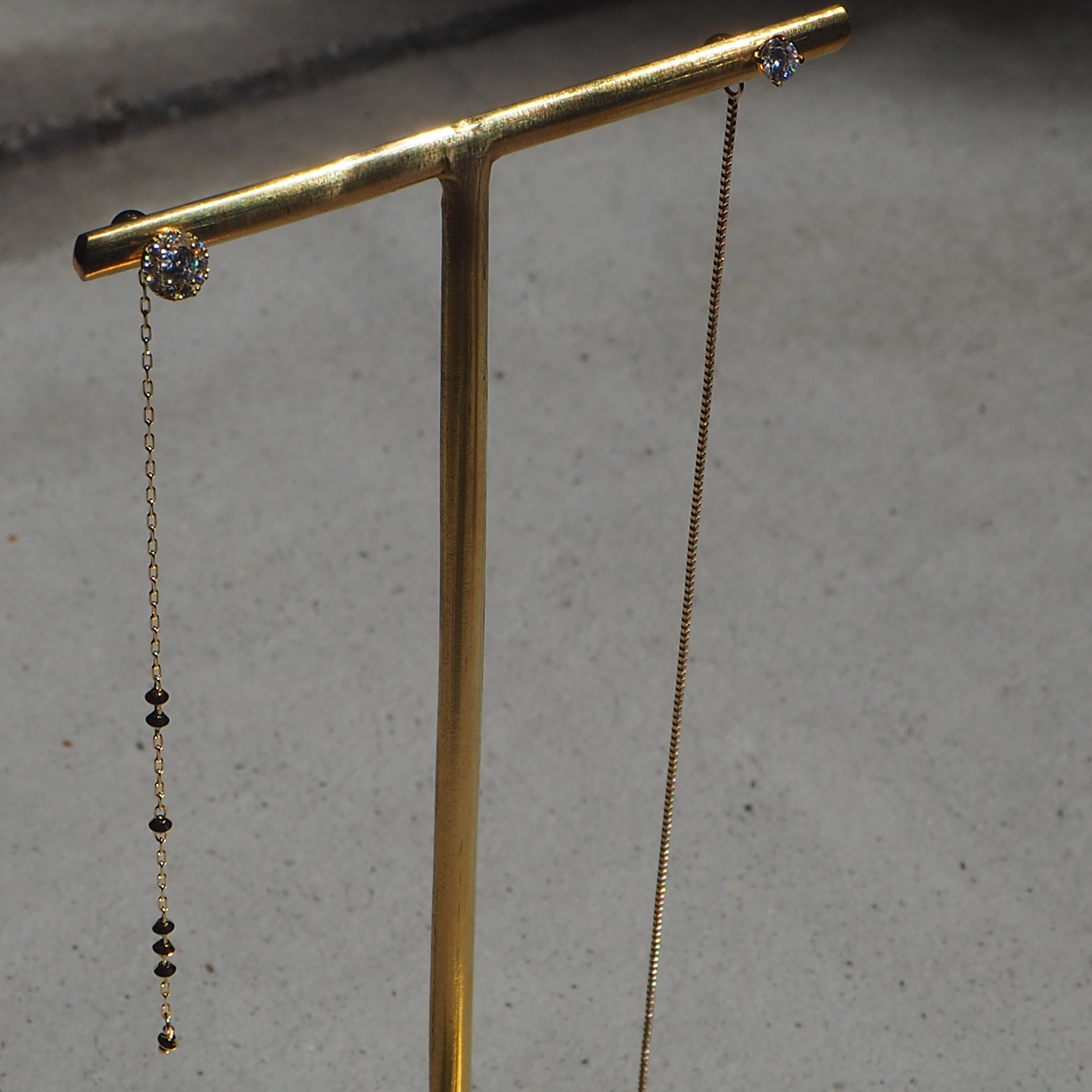 価格:9,900円(税抜) カットビーズが連なるピアスチャーム。 お手持ちのピアスに加えるだけで印象がガラッと変化します。 長さがあるので小ぶりはもちろん、やや存在感のあるピアスまで幅広く相性◎。 ※片耳販売。 素材:K10 サイズ:全長 約7.5cm 【 K10の特徴 】 白っぽいイエローで、スッキリとした爽やかな印象です。 K18に比べて肌なじみがよく、強度もあるので日常づかいにおすすめです。