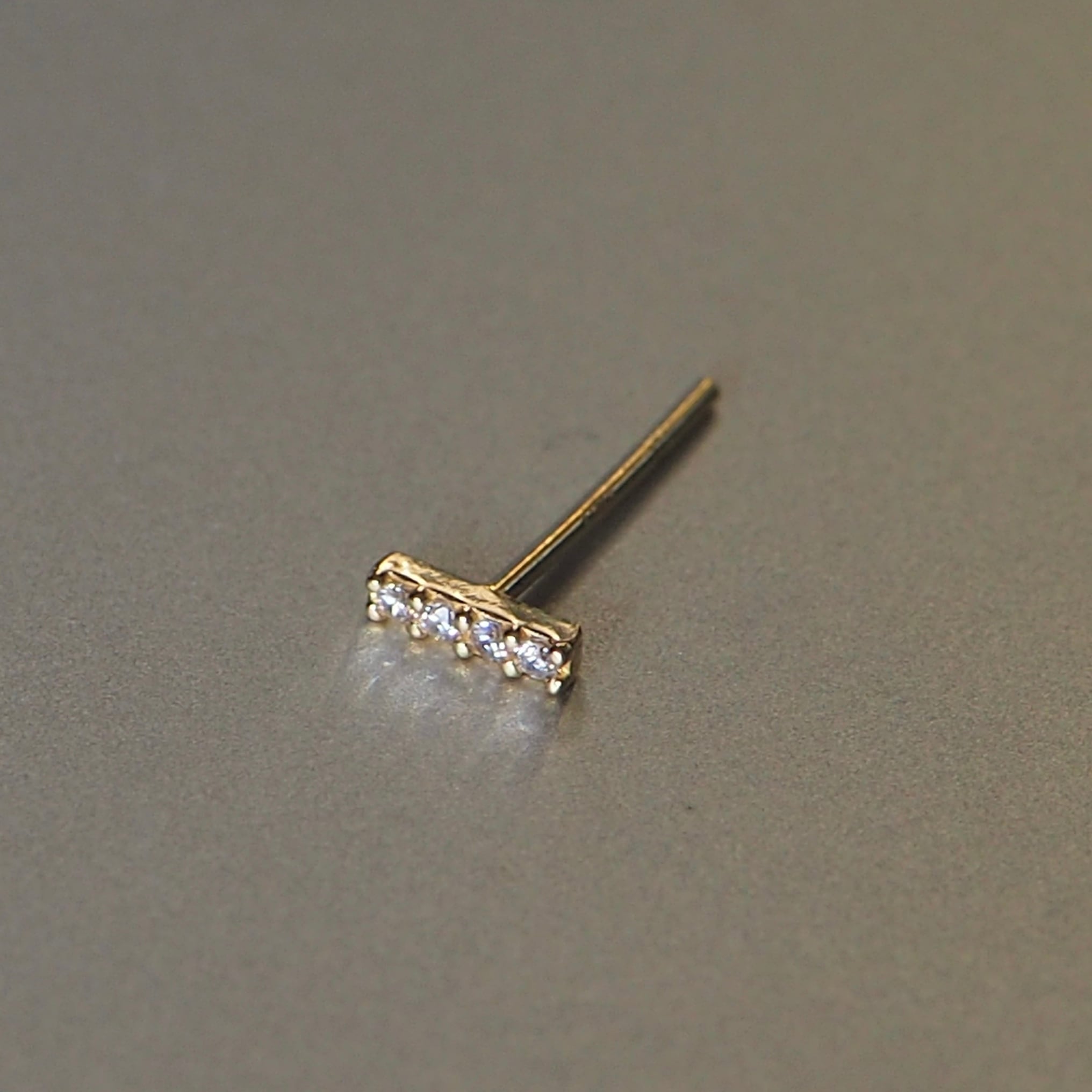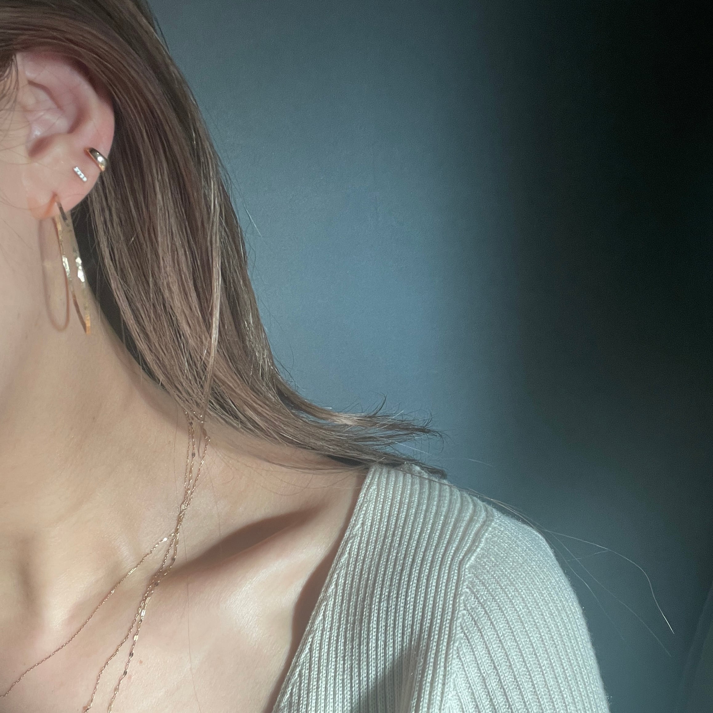 価格:7,800円(税抜) プチシリーズピアス。 K10でずっと綺麗な耳元が演出できます。 オフィスにはもちろん、トレンドっぽく複数づけも◎。 ※片耳販売。 素材:K10、キュービックジルコニア サイズ: 全長 約1cm モチーフ 約0.5cm 【 K10の特徴 】 白っぽいイエローで、スッキリとした爽やかな印象です。 K18に比べて肌なじみがよく、強度もあるので日常づかいにおすすめです。