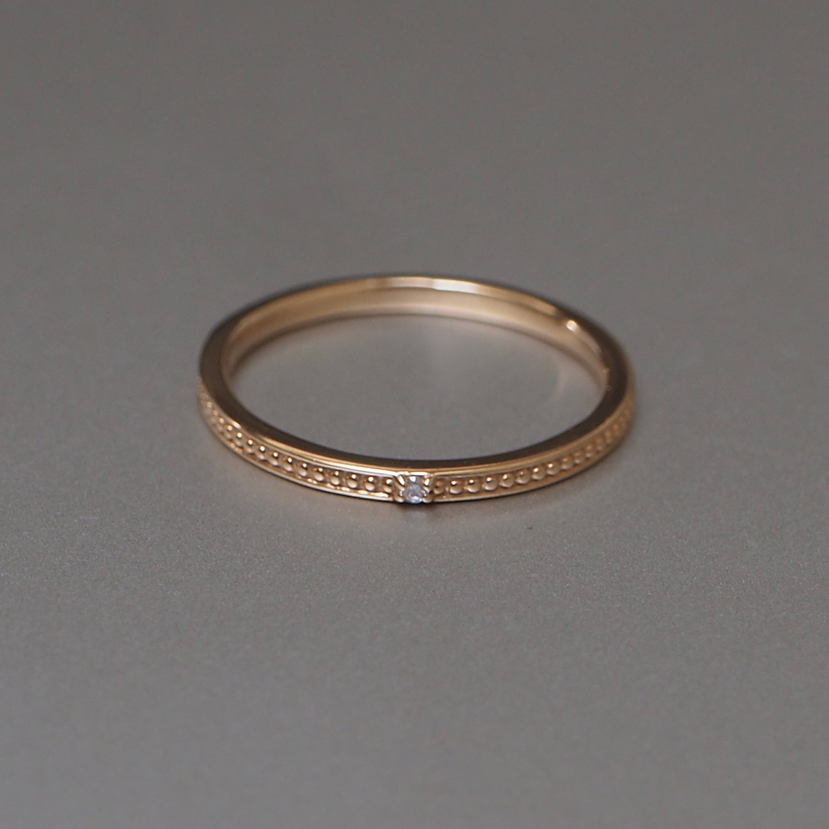 ミル打ちに真ん中のダイヤ一石が、カジュアルにも綺麗目にも。