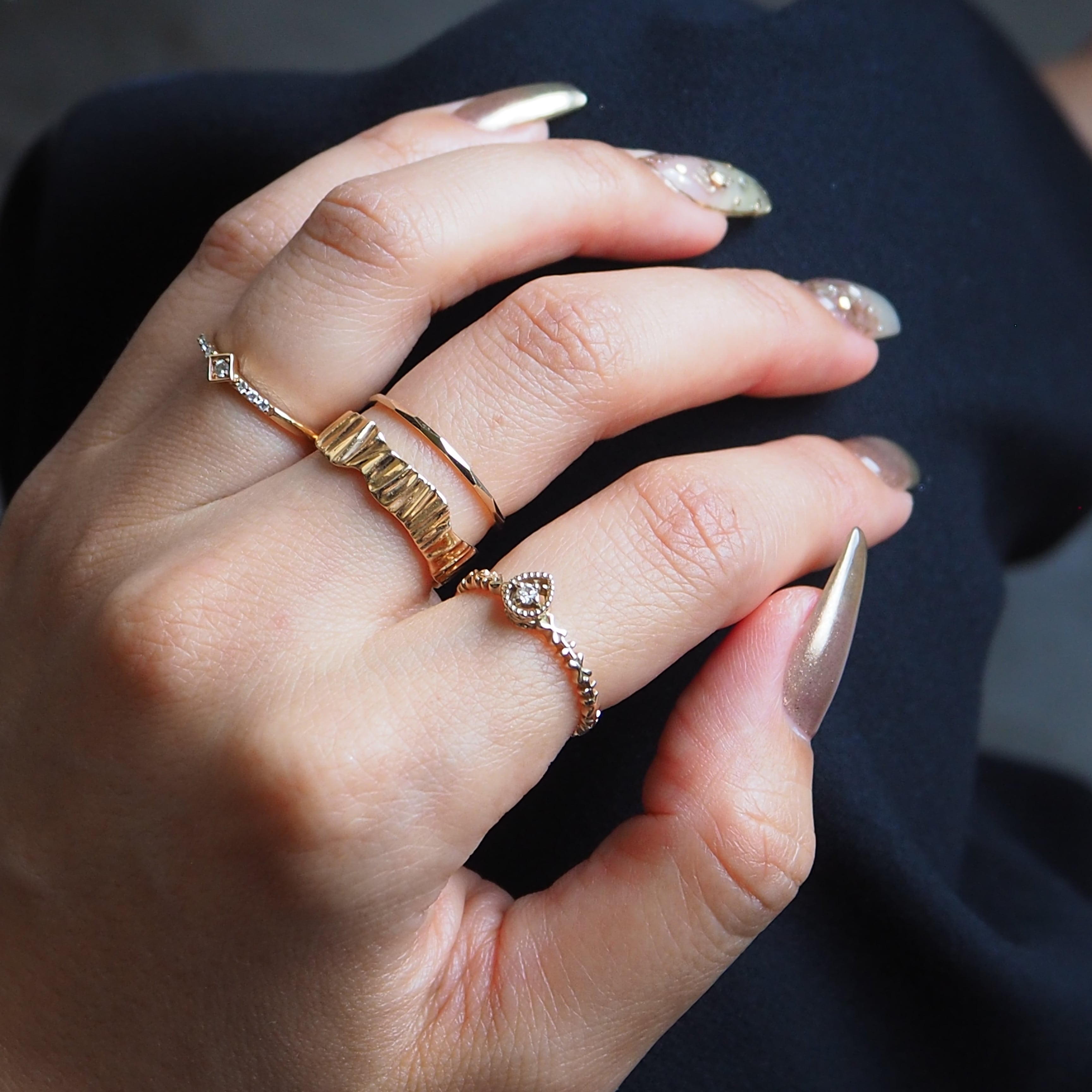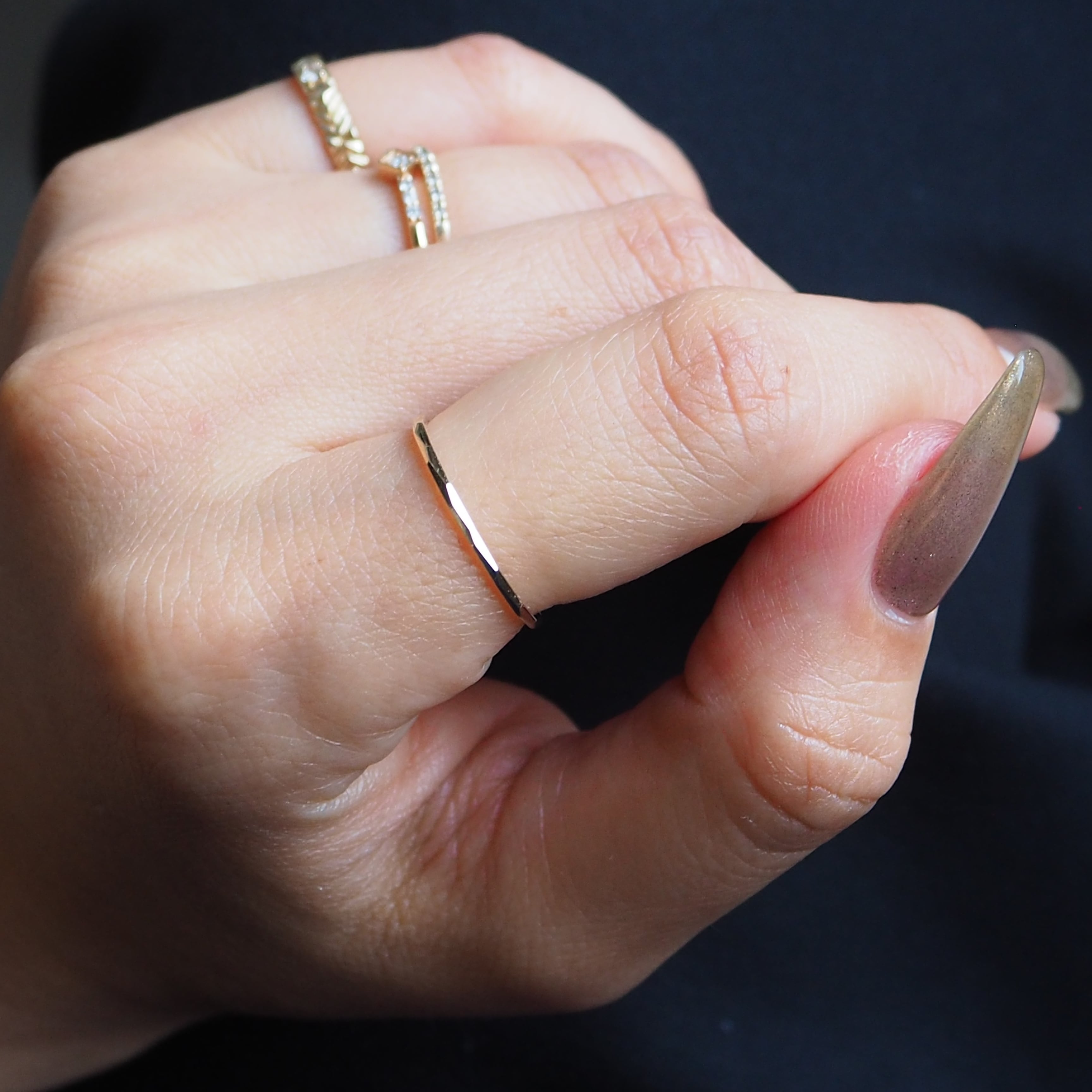 どんなデザインとも合わせやすいので、重ね付けリングにぴったり!