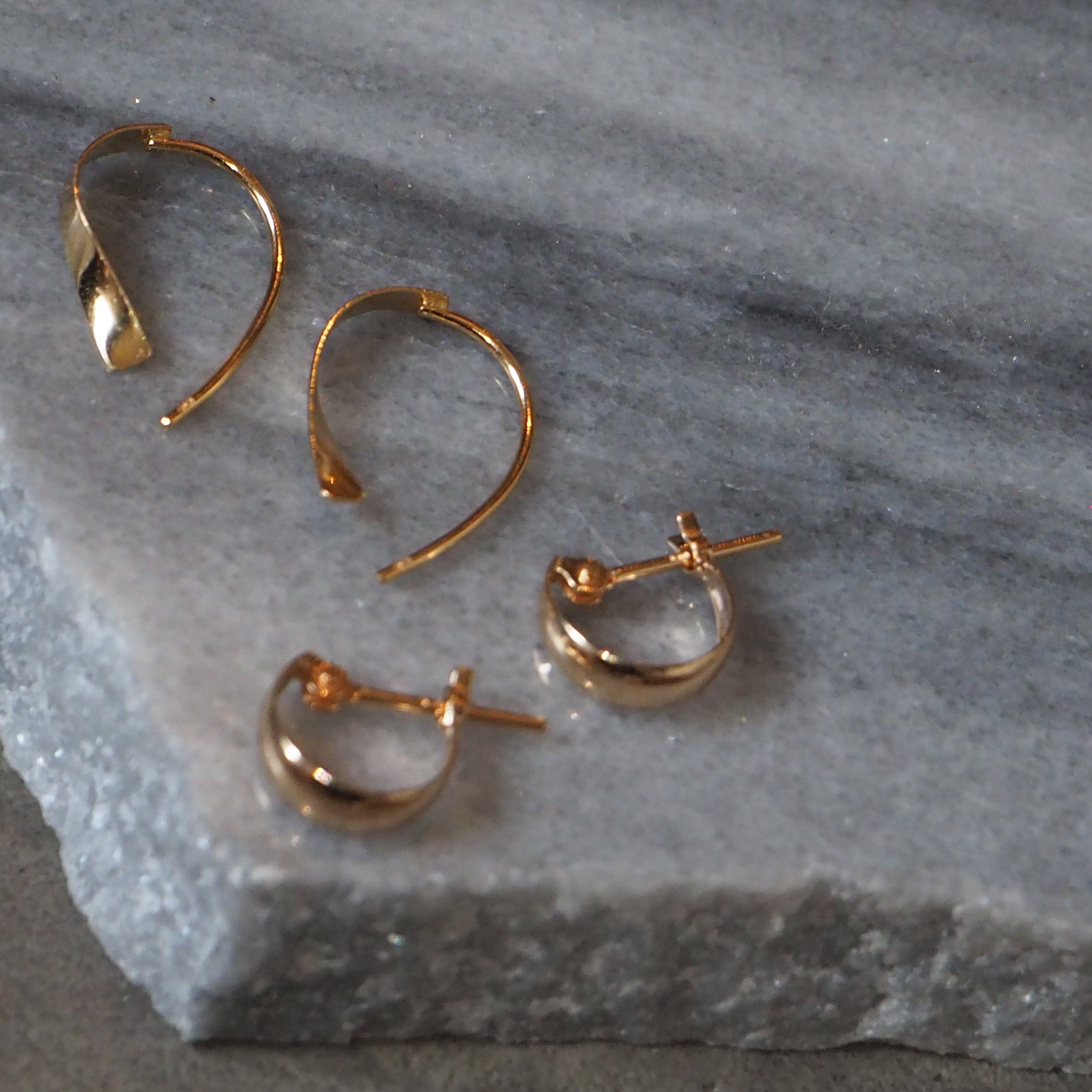 小ぶりのコロンとしたディテールが可愛いセットピアス。
