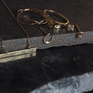 鎖骨に沿ってキラリと光る1粒ダイヤが女性らしさを演出します。