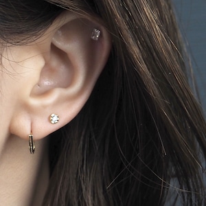 透かしデザインとおしゃれなスクエアシルエットが目を惹くプチピアス。