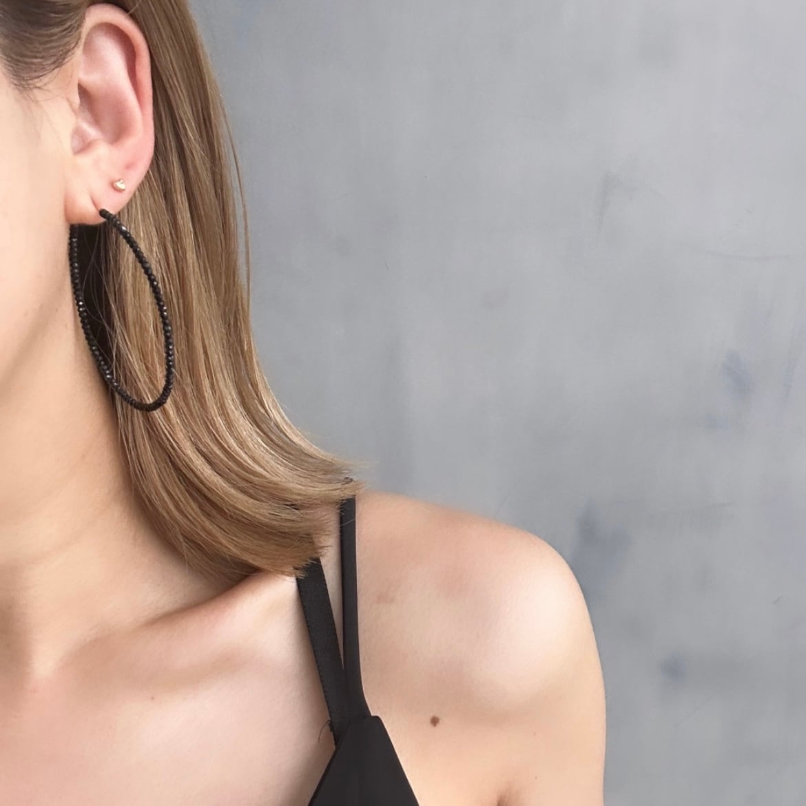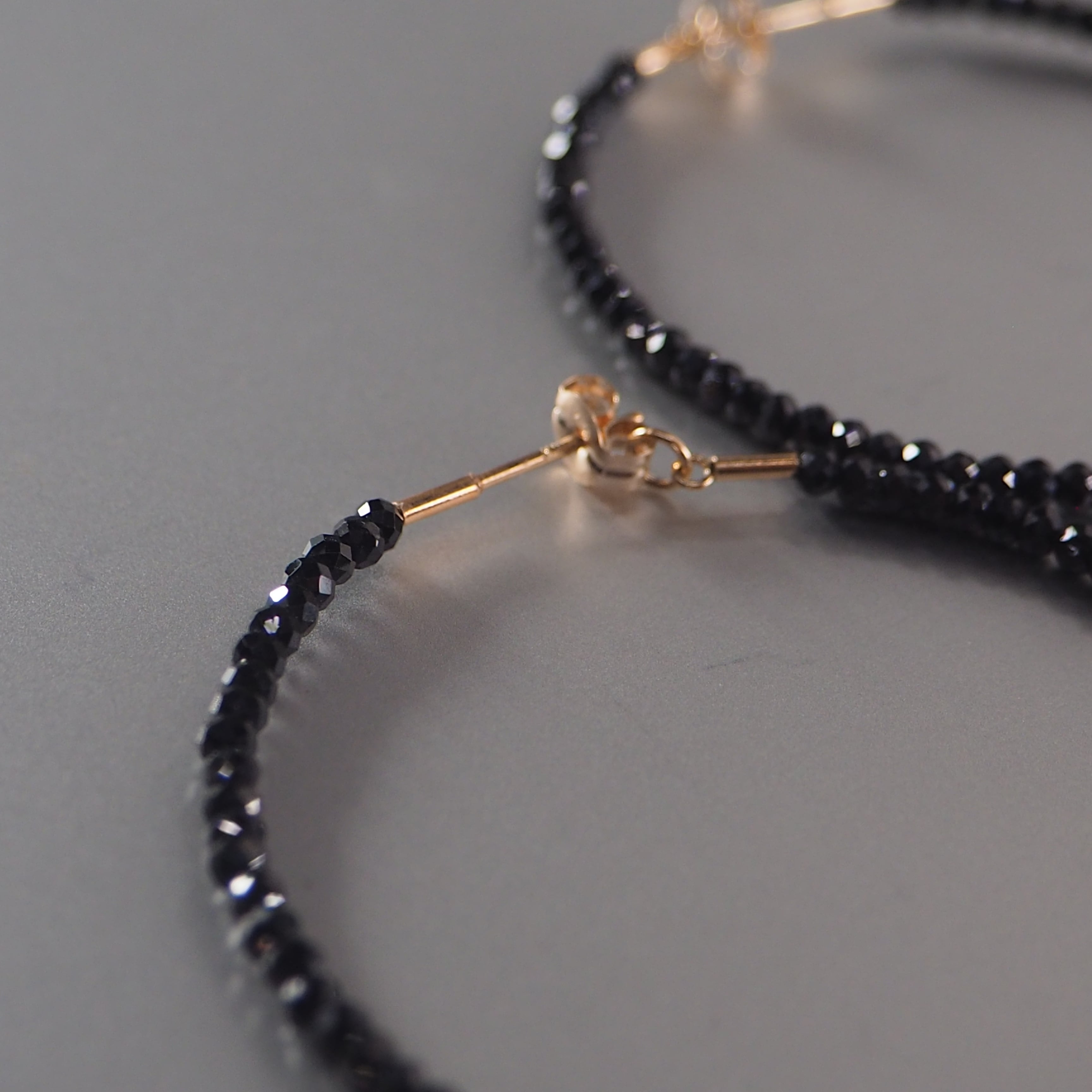 希少度の高いブラック石を使用し、落ち着きのある輝きで高見えコーデを演出。