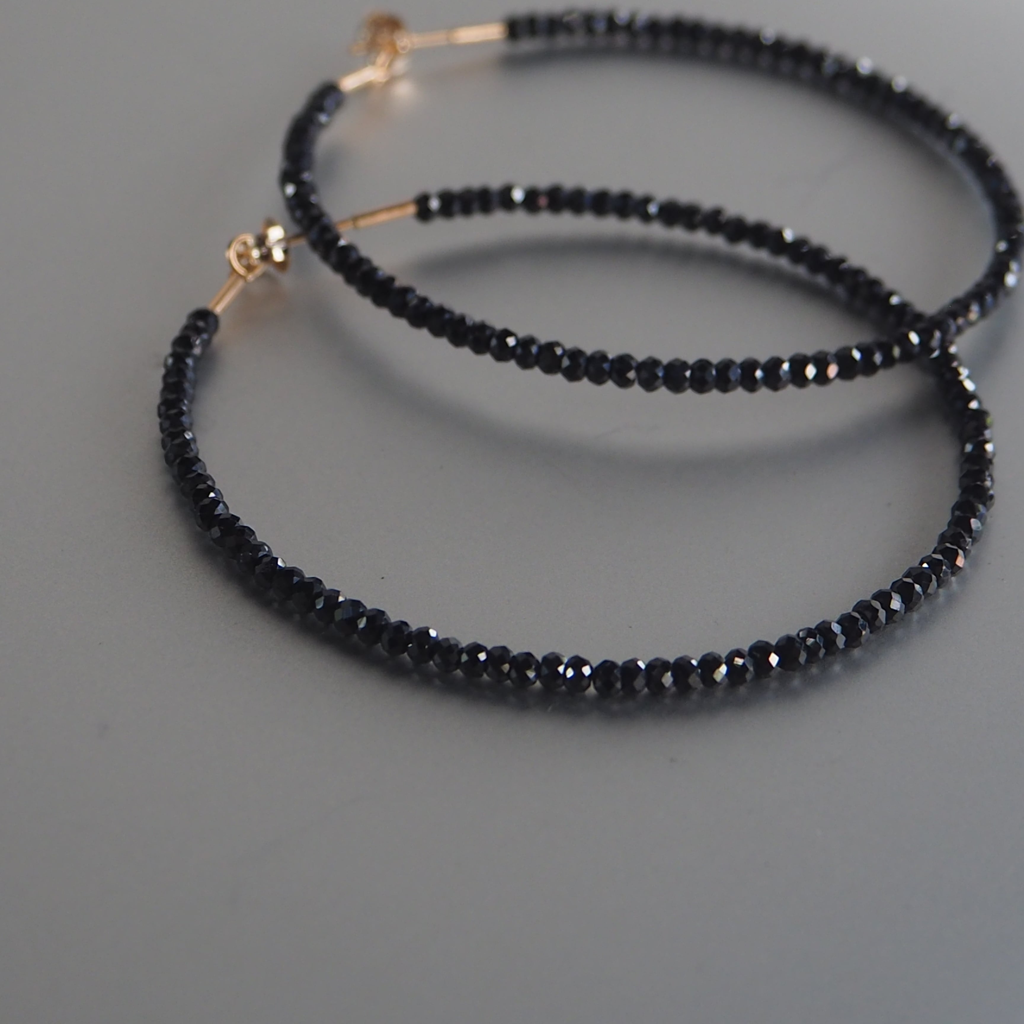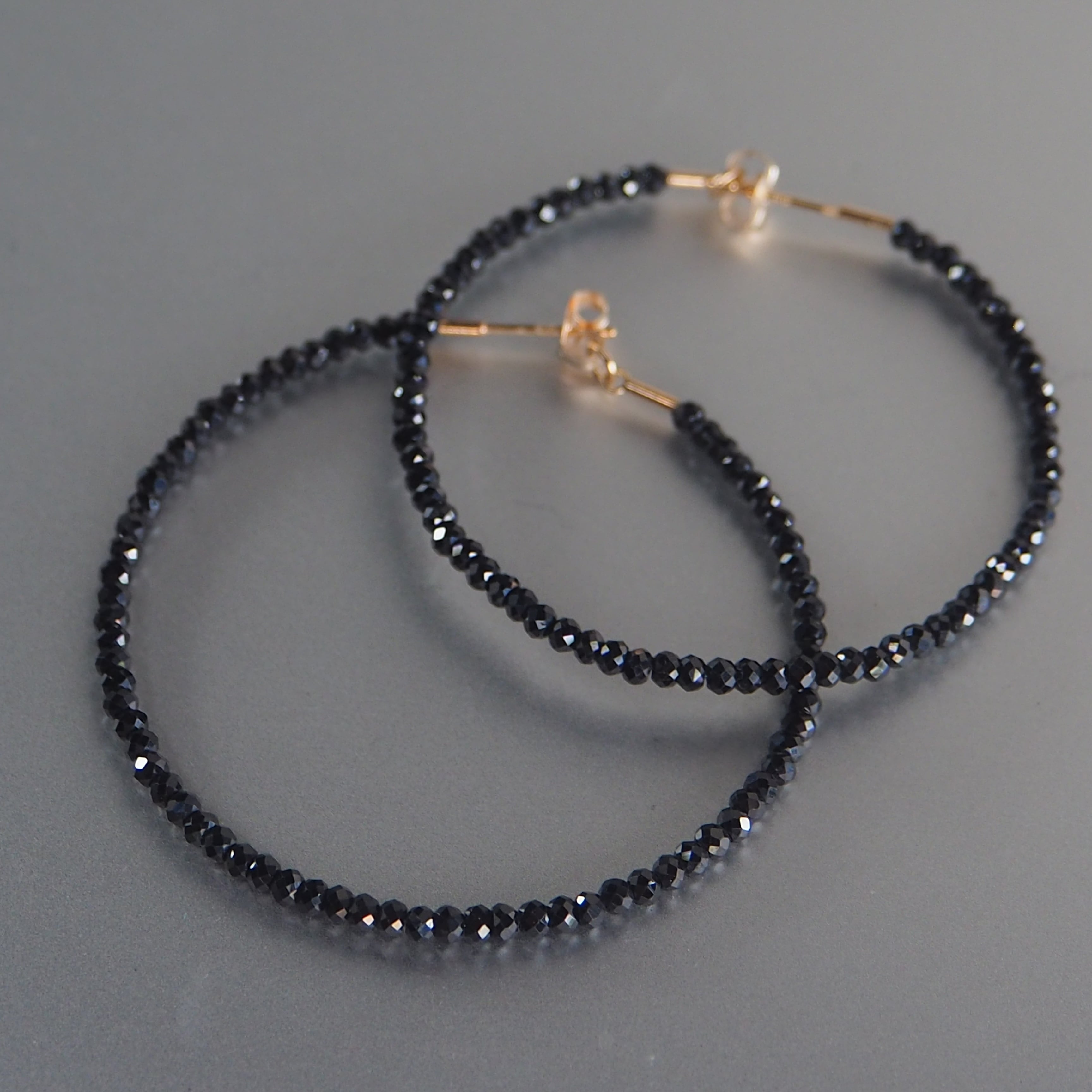 モアサナイト(天然石)をふんだんに使ったフープピアス。