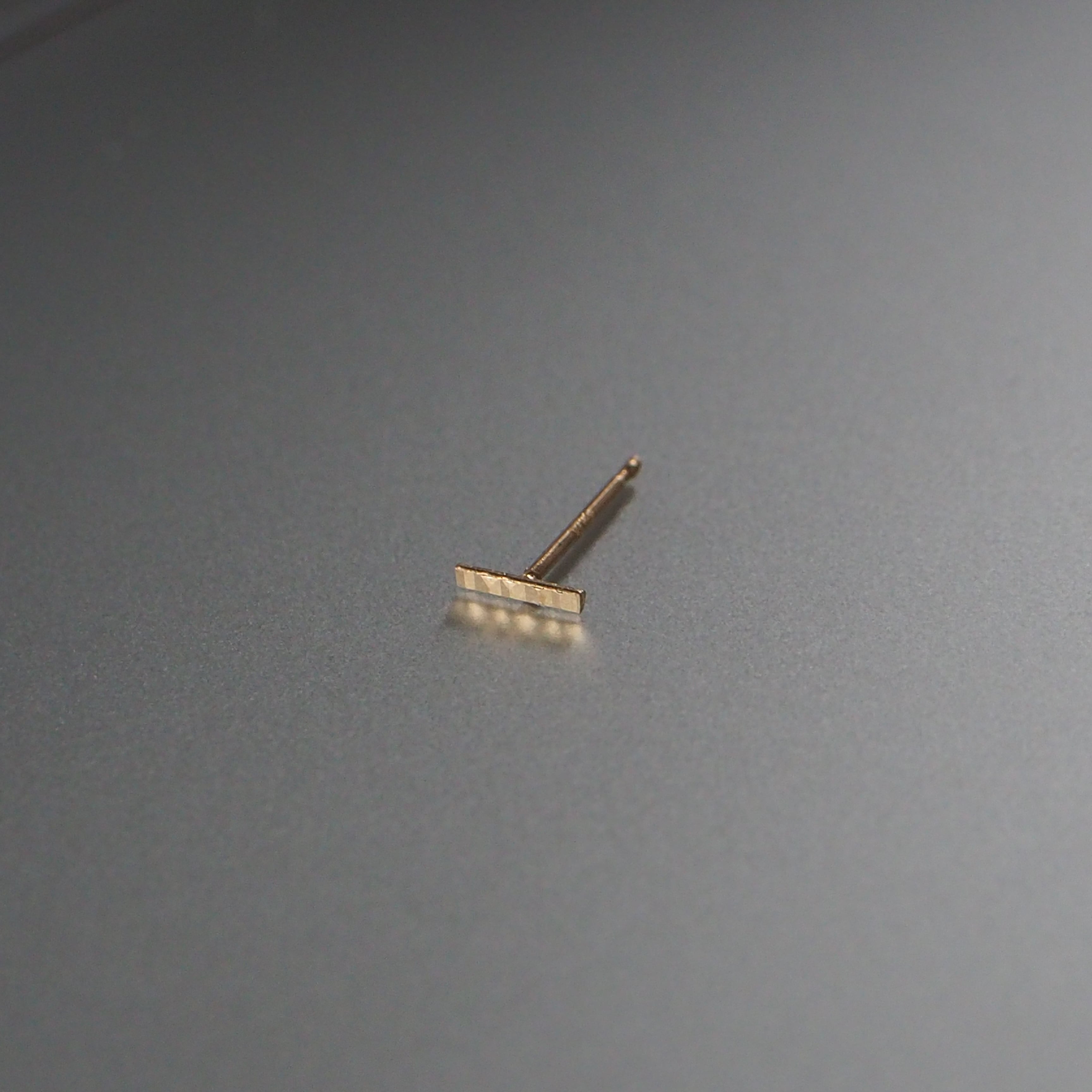 ぺたんとしたフォルムがマニッシュなプチピアス。