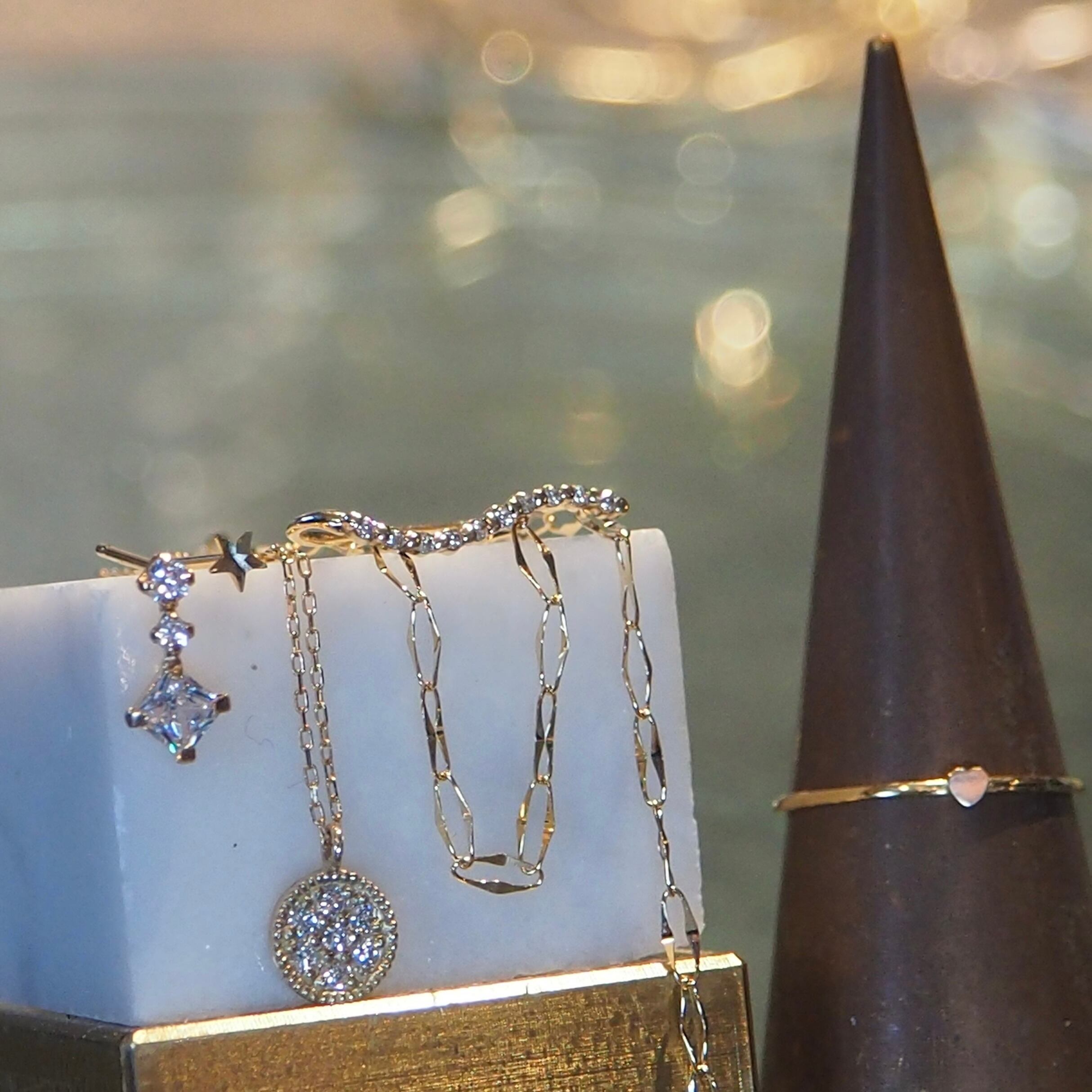 極小のサイズ感がさり気なく、表面に施されたカットがキラキラ光ります。