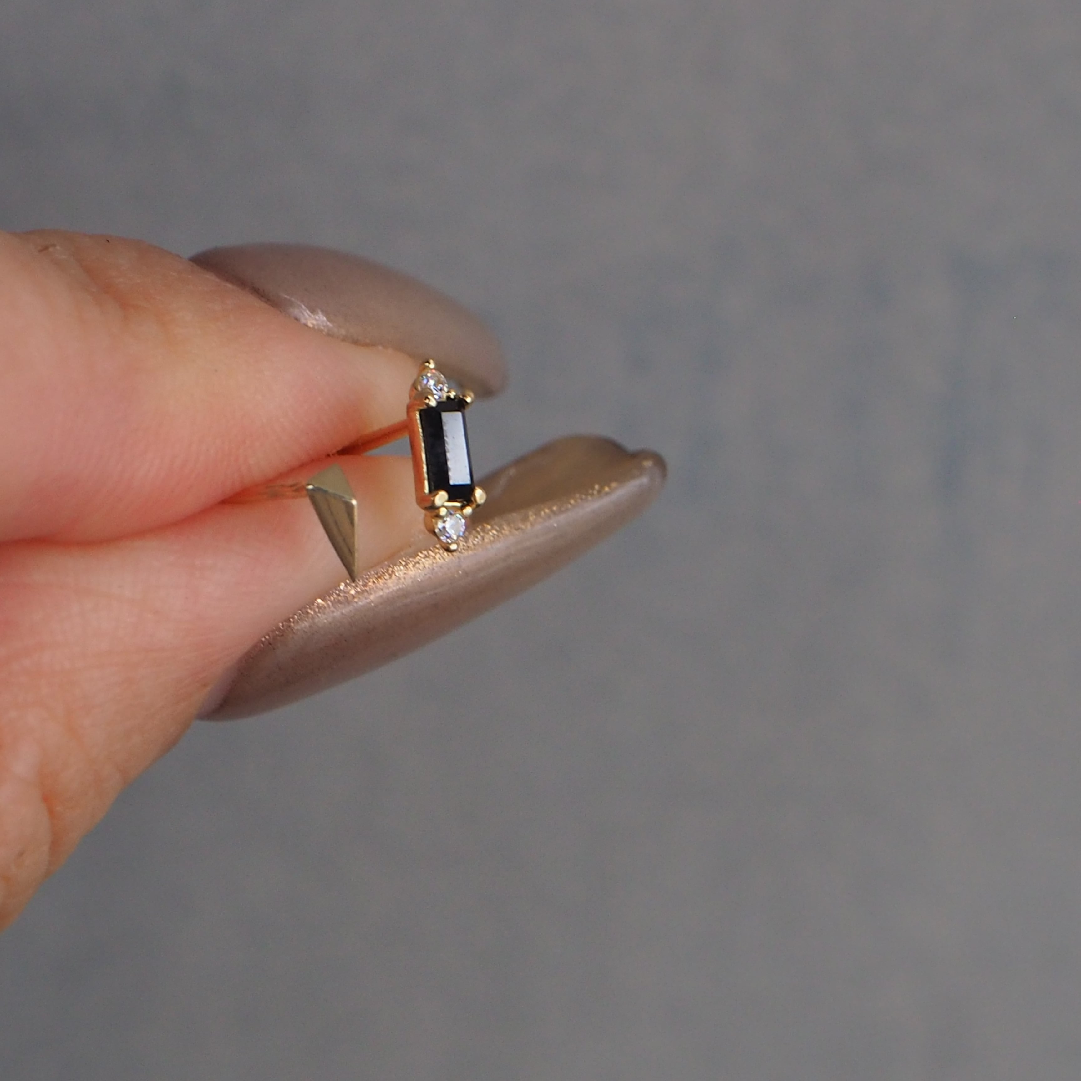 ダイヤモンドなどのキラキラに辛口な締めピアスとして活躍すること間違いなし!