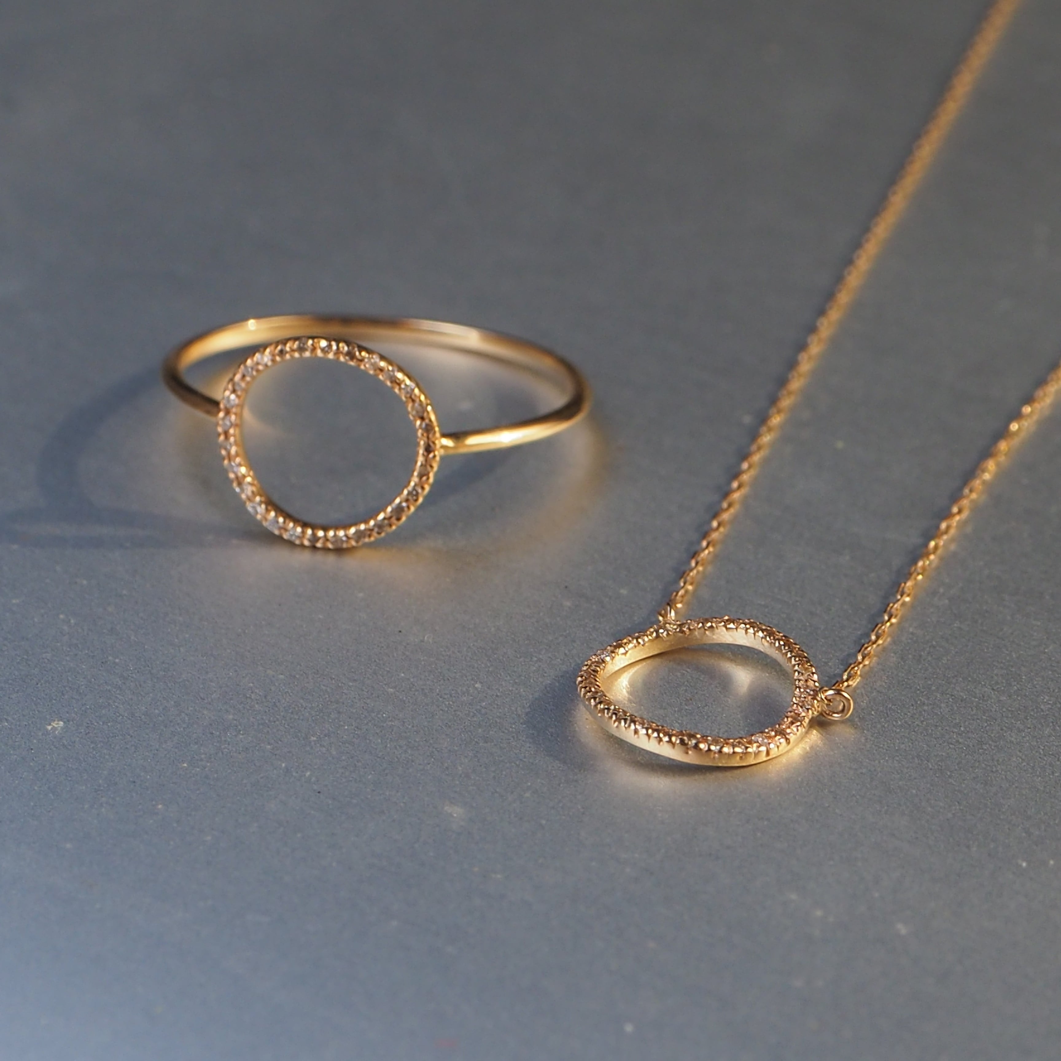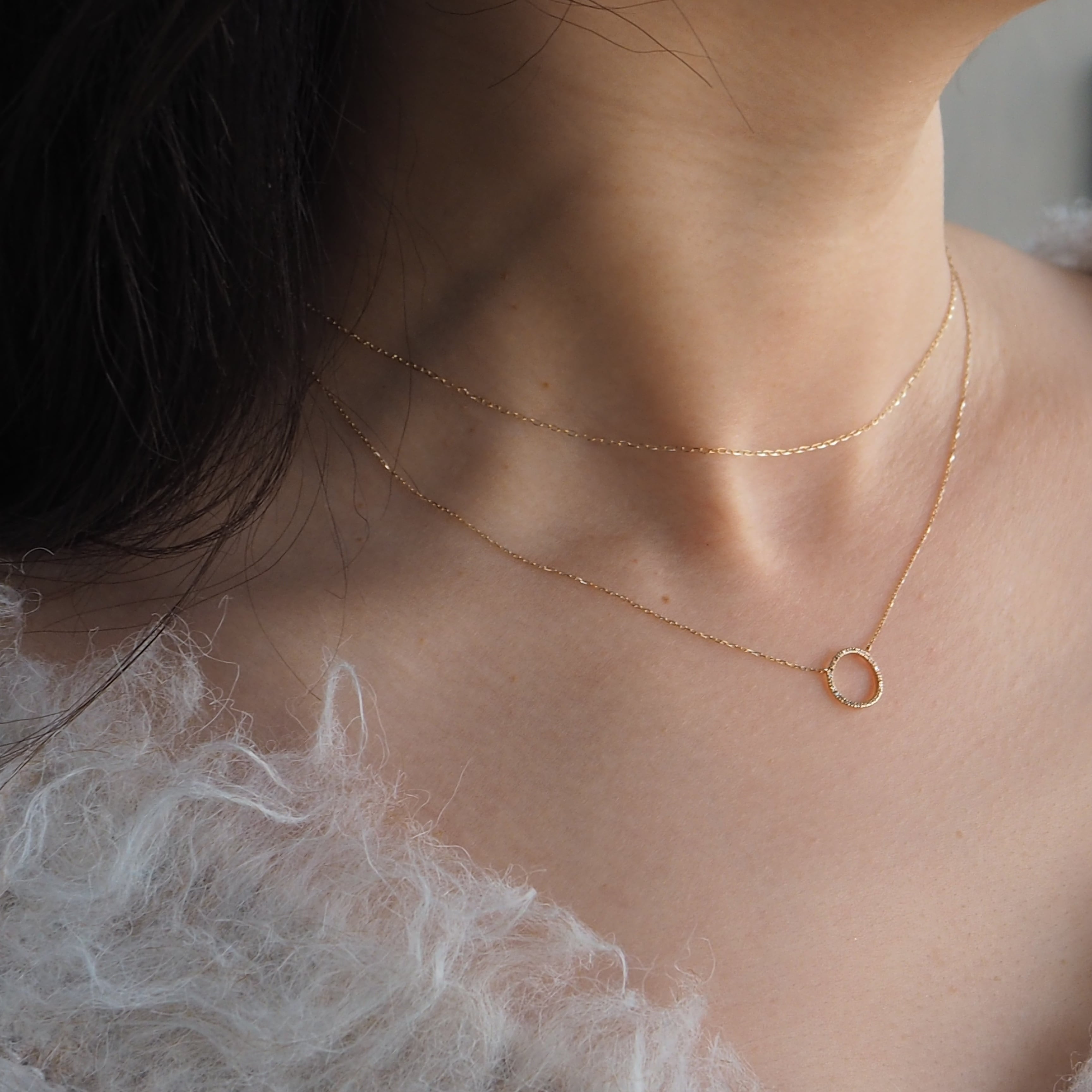 すっきりとしたラウンドモチーフのネックレス。