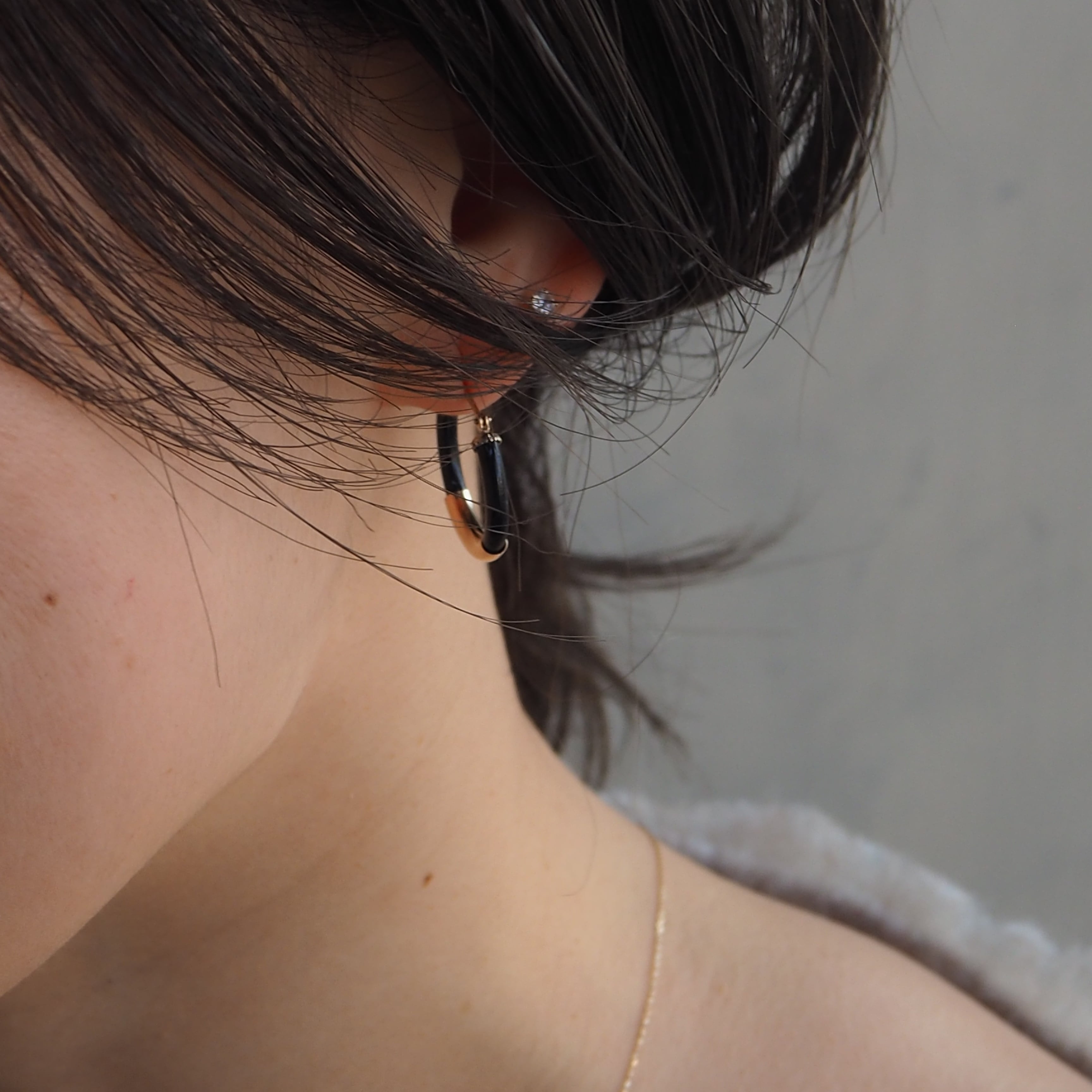 価格:17,500円(税抜) オニキスブラックが存在感のあるフープピアス。 ミドルサイズで使いやすく、カジュアルにもモードにも◎。 ゴールドパーツは可動式で動きに合わせてキラッと輝きます。 素材:K10、オニキス(天然石) サイズ: 全長 約2cm 【 K10の特徴 】 白っぽいイエローで、スッキリとした爽やかな印象です。 K18に比べて肌なじみがよく、強度もあるので日常づかいにおすすめです。