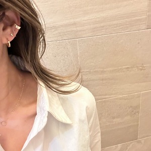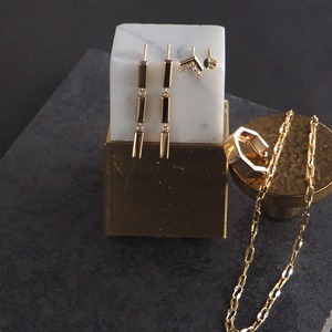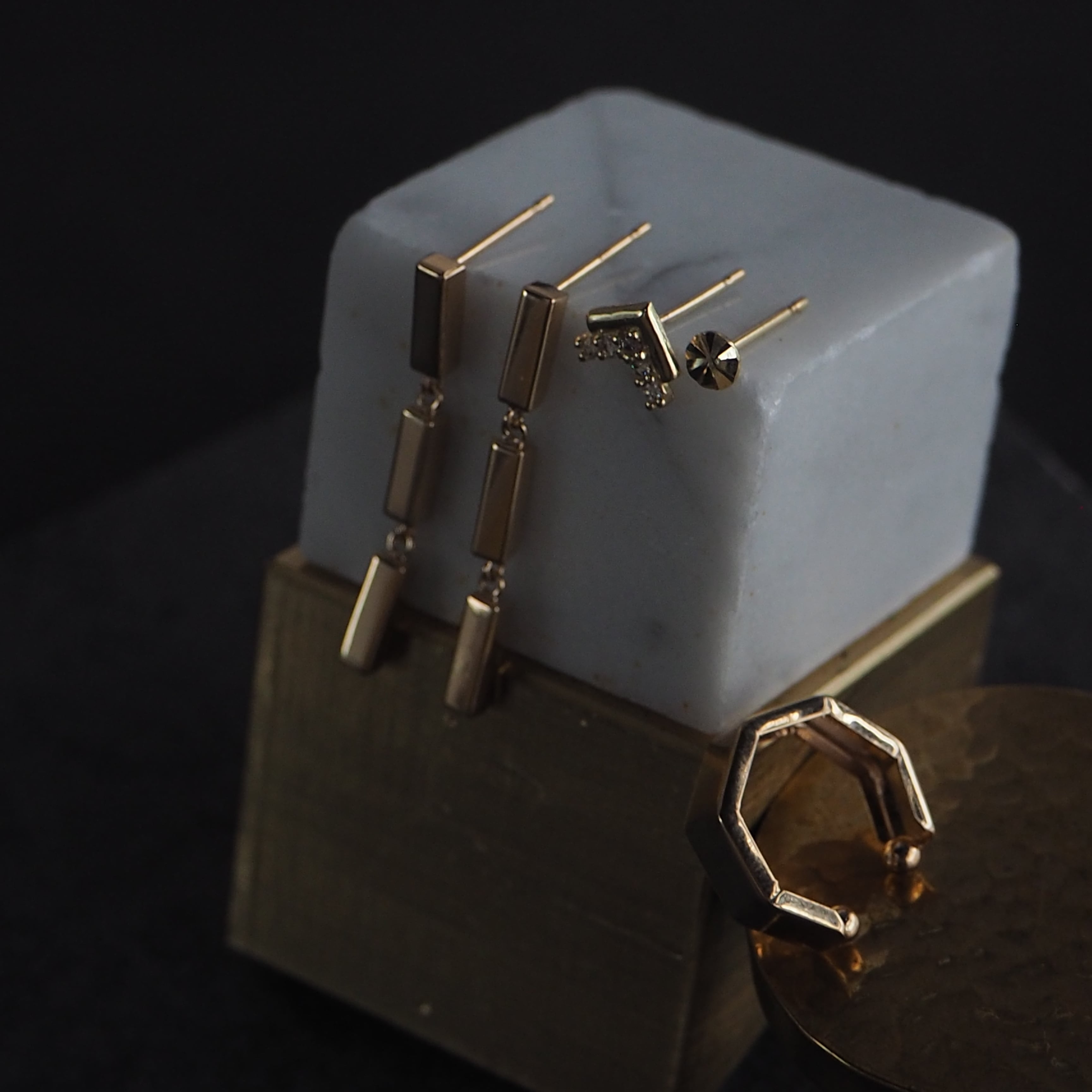 フラットなモチーフが落ち着いた風合いのプチピアス。